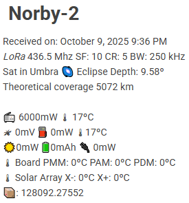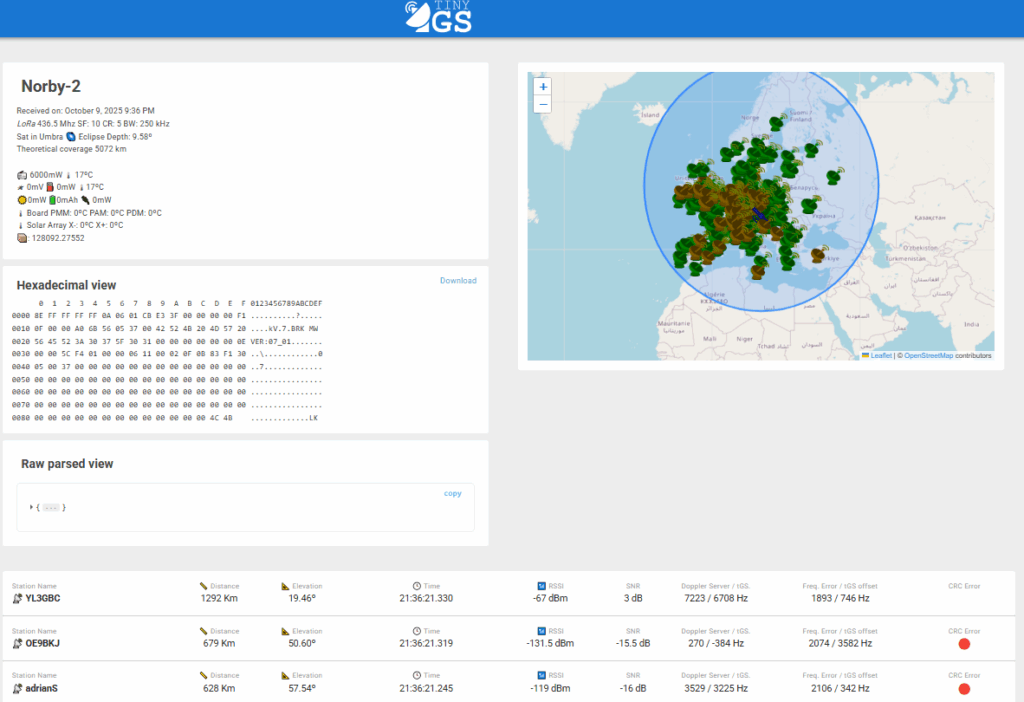 Linksboven wat informatie over het pakketje en over de satelliet zelf.