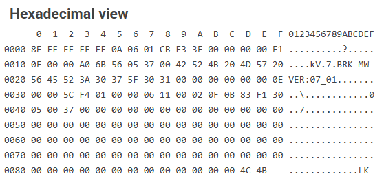 Dit Hex-bestand is te downloaden. Dit specifieke bestandje was 143bytes! Hieronder (een deeltje van) hetzelfde bestandje vertaald door de parser.