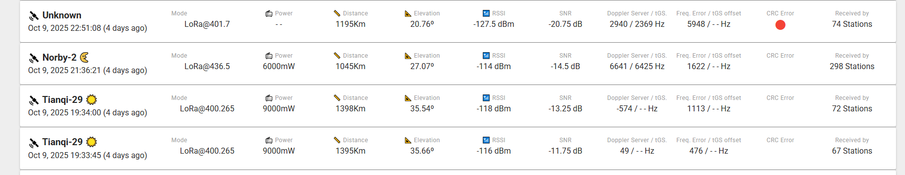 Linksboven wat informatie over het pakketje en over de satelliet zelf.