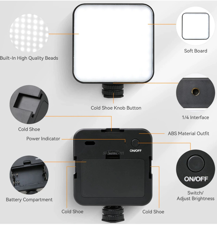 Precies zeven dagen later zijn ze in huis! Er moeten twee 1,5V batterijen in en dat lijkt me niet zo handig. Maar 5V voedinkjes heb ik genoeg en met een AMS1117-module ertussen wordt van de 5V een keurige 3V voor de ledjes gemaakt. Veel handiger voor in de “studio”. De lampjes zijn onderling koppelbaar, maar daar zie ik, in mijn toepassing, het nut niet van in. Wat wel handig is, is dat er een 1/4″ schroefdraad onderin zit: daardoor op van alles aan te koppelen!