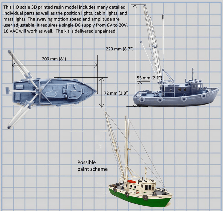 Weer zo’n aardig idee: een bootje op de modelbaan die deint op de golven! Zie hier: Sea swell. Een motortje zorgt ervoor dat de bovenkant van het bootje heen en weer schommelt. Met een knipper-ledje in de mast! €120!