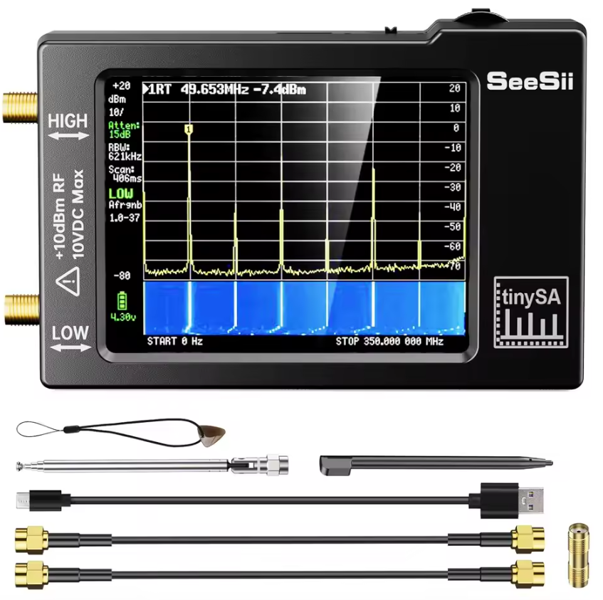 Zoals ik al eerder had opgemerkt komen er met het TinyGS project veel nieuwe dingen op mijn pad. Iets wat ik eerder al rondom de astronomie tegen kwam (lichtspectrografie) komt hier ook om de hoek kijken, maar dan op een andere frequentie! Heb je voor het ontleden van licht een spectrograaf nodig, voor elektromagnetische signalen gebruik je een spectrum analyser. Een eenvoudig exemplaar heb je tegenwoordig al voor weinig geld, dus heb ik er maar een aangeschaft: de TinySA.