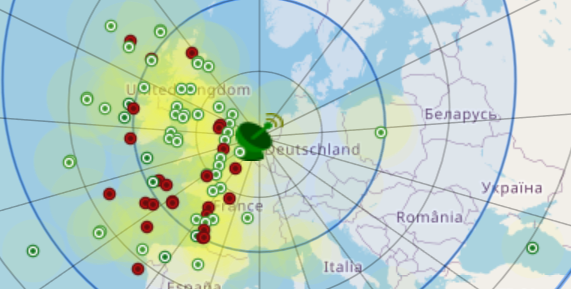 Wat wel leuk is om te zien is dat vooral van satellieten die ten westen van mij voorbijkomen, pakketjes verzameld zijn. Mijn antenne staat ook binnen, op de vensterbank, gericht naar het westen. Toch zie je in bovenstaand plaatje dat er pakketjes zijn verzameld van een satelliet boven Polen (GeoScan-2, op 1.132Km afstand) en van een boven de Zwarte Zee (Tianqi-33, op 2.872Km afstand). Die 2.872Km is trouwens het afstandsrecord tot nu toe!